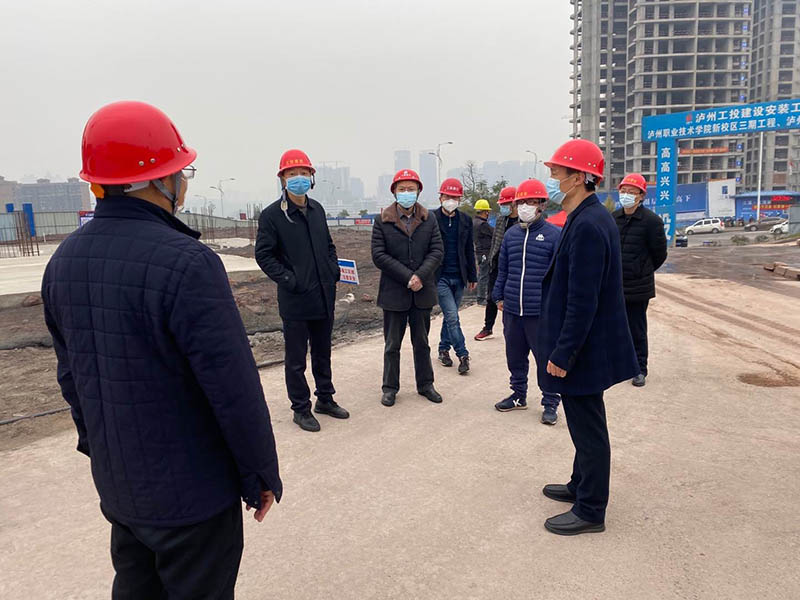 2月25日,瀘職院三期項目復工復產(chǎn)第一天,瀘職院校領導楊院長一行人在石清華董事長的陪同下來到項目部視察復工復產(chǎn)情況,并就復工復產(chǎn)及疫情防控工作進行指導。楊院長指出,因疫情原因瀘職院三期項目部分施工進度發(fā)生改變,但總體竣工節(jié)點要求不變,特別是剩下的學生宿舍樓又必須按照原定的計劃工期內(nèi)完成,任務變重,楊院長要求我們要加強保證進度質(zhì)量安全措施以及疫情控制保障措施,有什么困難要及時的與院方及項目實施中各單位溝通解決,一定要保證學生宿舍樓在原定計劃完成并交付使用。楊院長一行同時也對公司復工復產(chǎn)疫情防控準備工作及實施情況予以認可,表示公司在疫情后的復工復產(chǎn)準備工作中做得早!做得充分!做得好!值得肯定!